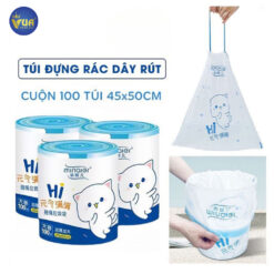 Túi Rác Hình Mèo Có Quai Xách Dễ Thương Bé Siêu Thích 100 túi/cuộn, Kích Thước 45×50